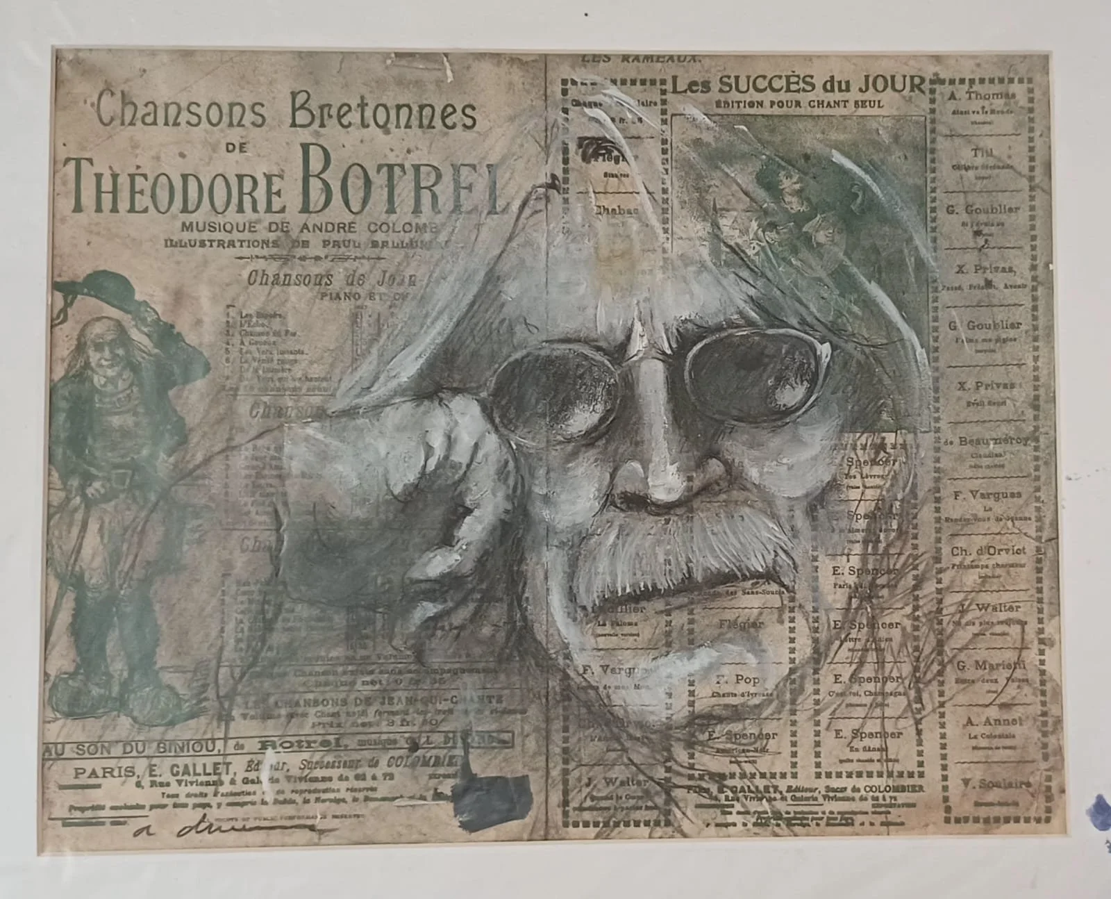 CHRISTOPHE - CARBONCILLO SOBRE PAGINAS DE PARTITURAS - 40X32CM